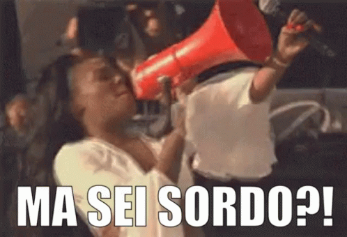 A woman shouts into a red megaphone with the text 'Ma Sei Sordo?!' (Are You Deaf?!) displayed.