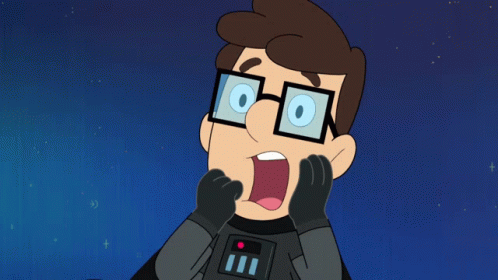 Cartoon character in Darth Vader costume looks shocked and surprised, in a Powerpuff Girls context.