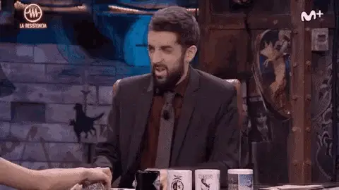 A person covers their face in a kitchen, then reveals a shocked and surprised expression.