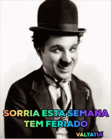 Charlie Chaplin smiles, reminding everyone to smile because this week has a holiday. A classic image with a cheerful message.