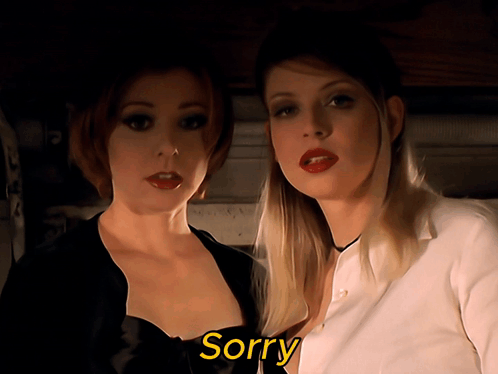 Tara Maclay and Willow Rosenberg (Alyson Hannigan, Amber Benson) in a poignant scene from Buffy the Vampire Slayer.