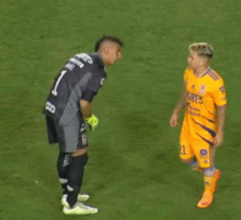 Jefferson Soteldo and Nahuel Guzman in a tense on-field confrontation during a Liga MX match.