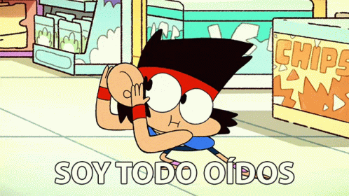 Ko from OK K.O.! Let's Be Heroes says 'Soy Todo OĆdos' (I'm All Ears) in front of a chips store.