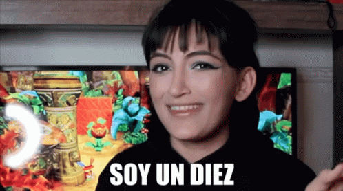 Matugarces confidently declares 'Soy Un Diez' (I'm A Ten) with a smile, in front of a colorful screen.