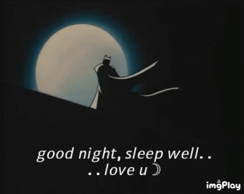 A Batman-like figure against a full moon with a 'good night, sleep well.. love u' message, for Space Punks Club.