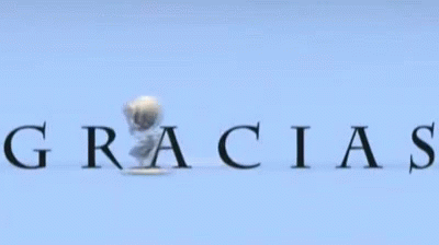 The iconic Pixar lamp, Luxo Jr., playfully jumps on 'GRACIAS' before 'POR SU ATENCION' appears, a Spanish thank you message.