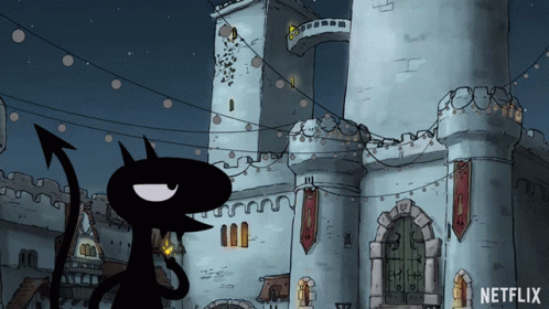 Luci, voiced by Eric Andre, creates a spark of light in front of a castle from Disenchantment.