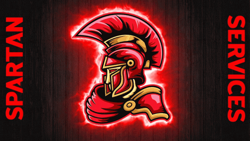 Animated Spartan Services logo featuring a red helmet with glowing effects on a dark, textured background.
