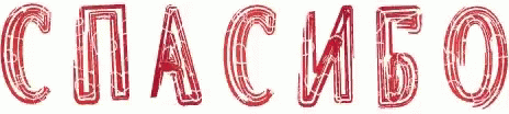 Animated display of the Russian word 'спасибо' (Thank You) in red letters.