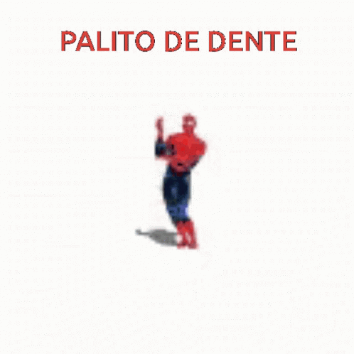 Pixelated Spider-Man animation dancing with the text 'Palito De Dente' (Toothpick) displayed above him.