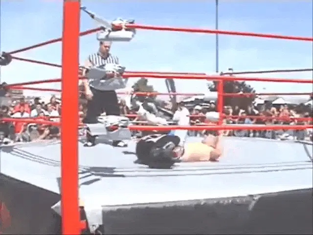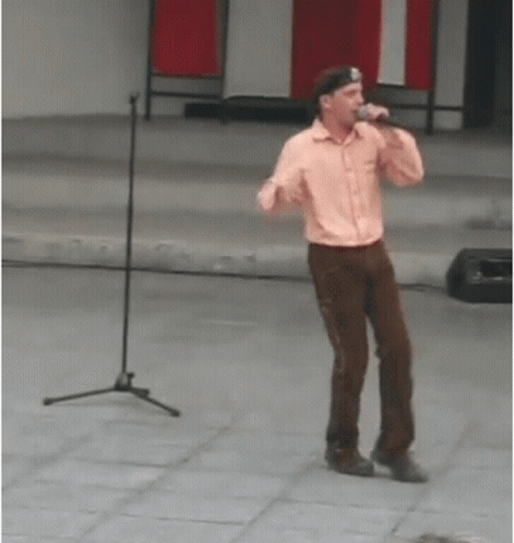 Spitzbua Markus performs lively schlager dance, singing into a microphone on stage.
