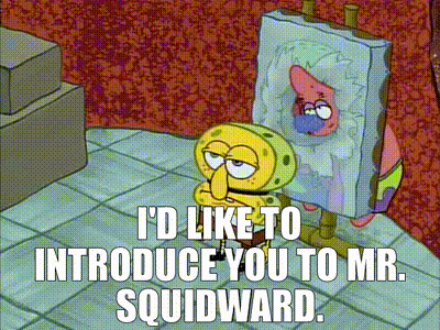 Spongebob Squarepants and Patrick Star introduce a crude drawing of Mr. Squidward Tentacles in this funny meme.