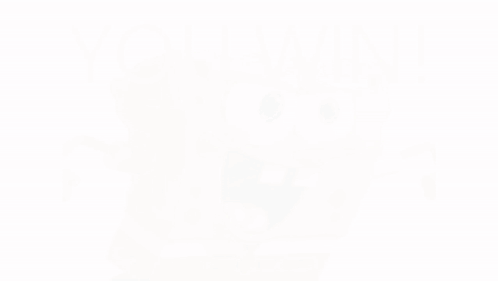 Spongebob Squarepants celebrates a victory with 'YOU WIN!' text from Spongebob's Basics Remastered.