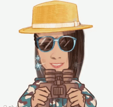 A cartoon woman wearing a hat and sunglasses holds binoculars, ready for a spy mission.
