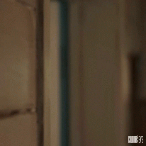 Jodie Comer as Villanelle peeks from behind a wall, wearing iconic red heart-shaped sunglasses.