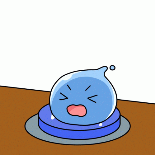 A frustrated Squishiverse slime character floats above a blue button asking 'wen?'