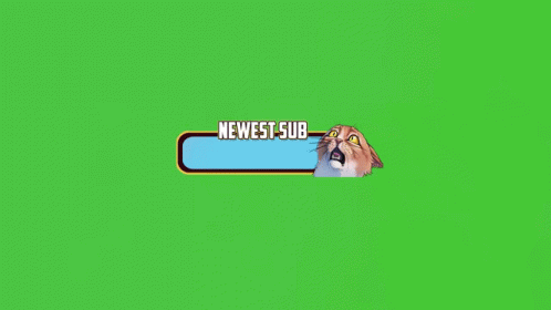 Animated 'NEWEST SUB' banner with a surprised cat meme, ideal for stream alerts on a green screen.