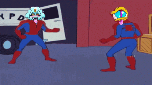Two animated Side Street Society characters, resembling Spider-Man, point at each other in an iconic meme.