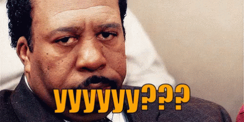 Stanley Hudson from The Office looking confused and judgmental with 'yyyyyy???' text.