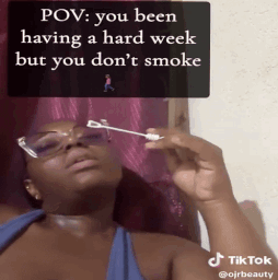 a woman blowing bubbles with a caption that says " pov you been having a hard week but you don 't smoke "