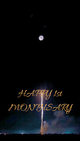 A vibrant fireworks display celebrates the 1st monthsary for the Hardcor Family, featuring a full moon.