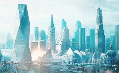 A stunning futuristic city skyline, reminiscent of Star Trek, featuring towering skyscrapers and advanced architectural designs.