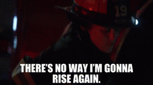 Station19's Maya Bishop states, 'There's no way I'm gonna rise again,' in a dark, red-lit scene.
