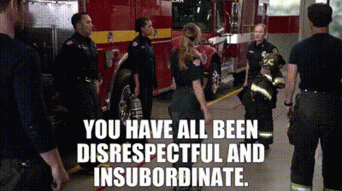 Maya Bishop addresses firefighters in Station19, stating, 'You have all been disrespectful and insubordinate.'