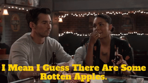 Vic Hughes (Barrett Doss) from Station19 discusses 'rotten apples' while sitting at a bar with a male companion.