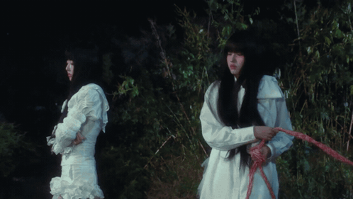 a person tied up with a red rope