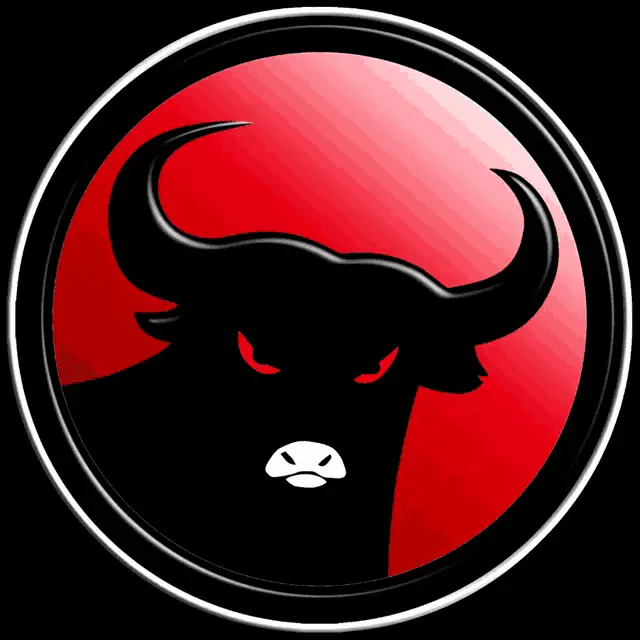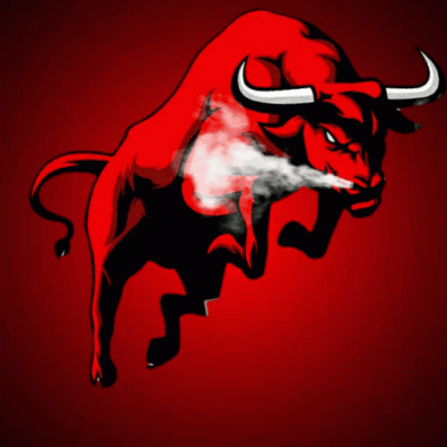 Steljo Pdip, a man in a red shirt with the PDI-P logo, stands before a red bull, embodying 'SOLID BERGERAK'.