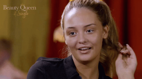 Ashleigh Coyle from Beauty Queen & Single smiles and plays with her hair, a charming moment.