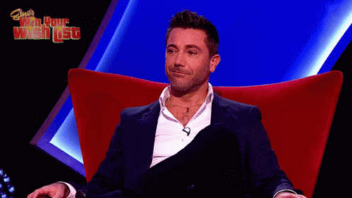 Gino D'Acampo, host of Gino's Win Your Wish List, laughs heartily while seated in a red chair.