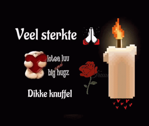 A heartfelt message of strength and love for Truudsje, featuring a candle, teddy bear, and rose.