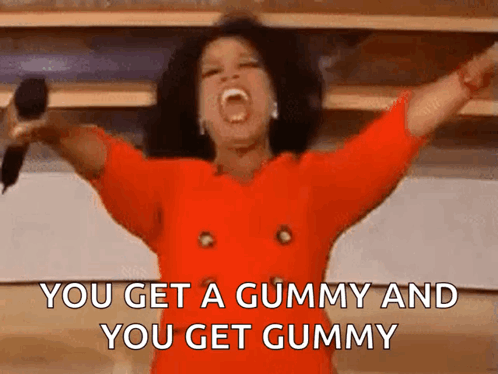 A woman in a striking red dress holds a microphone, arms outstretched, and screams passionately.
