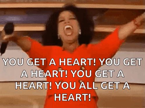 Oprah Winfrey holding a microphone with her arms outstretched, captured in a still-like pose.