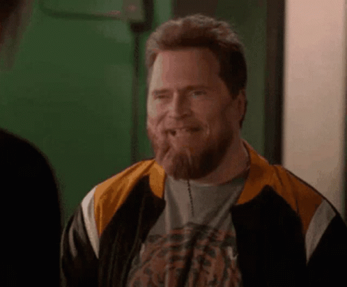 Paul Walter Hauser as Stingray from Cobra Kai making a funny face and laughing.