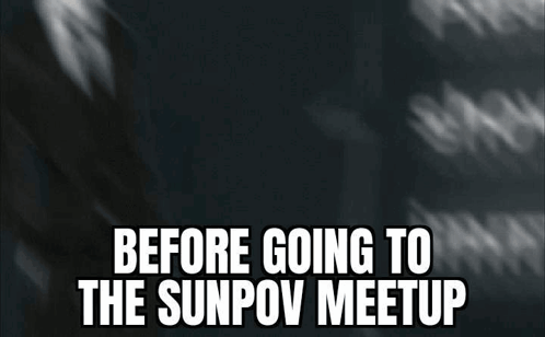 A meme featuring an anime character and a reminder to shower before the Sunpov meetup.