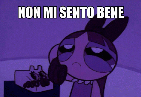 A Powerpuff Girl character, Blossom, looks unwell while on the phone, with the Italian caption "Non Mi Sento Bene" (I Don't Feel Well).