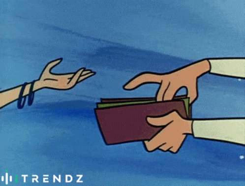 A cartoon depiction of hands exchanging money, symbolizing stock market transactions, likely for Itrendz Trading.