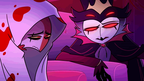 a couple of cartoon characters are sitting on a couch with their eyes closed .