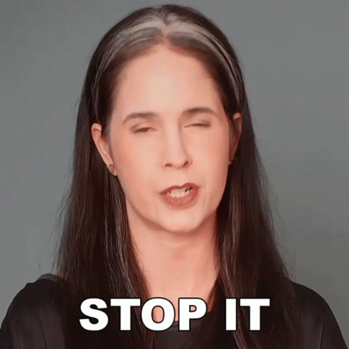 Rachel Smith emphatically says 'Stop it,' with the phrase appearing on screen.