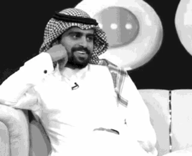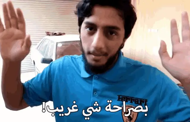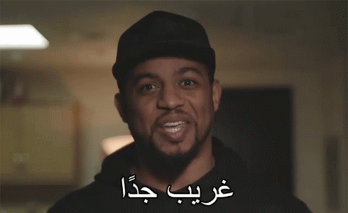 A man, Fahad Sal, in a black hat and hoodie reacts with a 'very strange' expression, as captioned in Arabic.