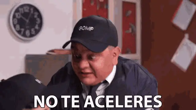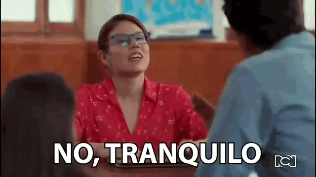 Strelin makes a 'stop' gesture with both hands and says 'Tranquilo' (Calm down) on a television set.
