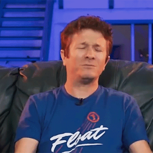 Corridor Crew member looking stressed, covering his face with his hands in a moment of frustration.