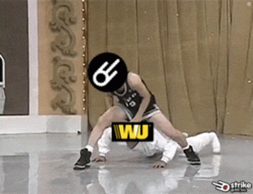A person representing Strike (Bitcoin app) is shown in a dominant position over another representing Western Union.