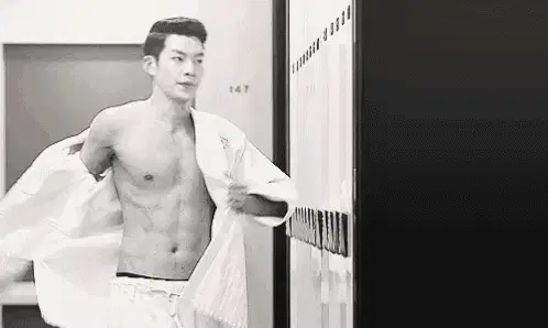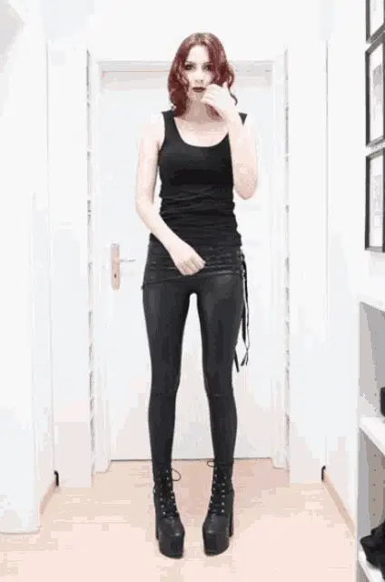 a woman is taking off her shirt in a dressing room .