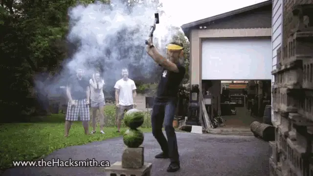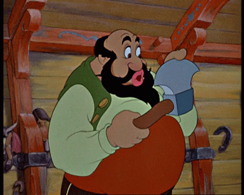 Mangiafuoco, also known as Stromboli, a character from Pinocchio, holding an axe and smiling.