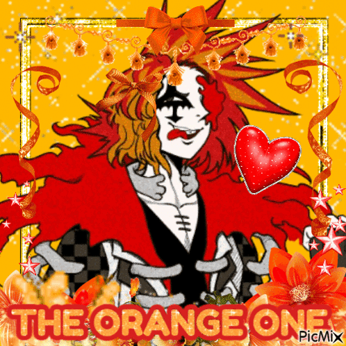 A vibrant image of a clown-like character, known as The Orange One, from Your Turn to Die.