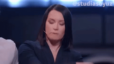 Ида Галич энергично хедбендит во время выступления на шоу Студия Союз, ее волосы разлетаются в движении.